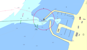 Angöring till hamnen sker i enslinje 88°. Se upp för grunden “Kulorna” väst-sydväst om hamnen.
